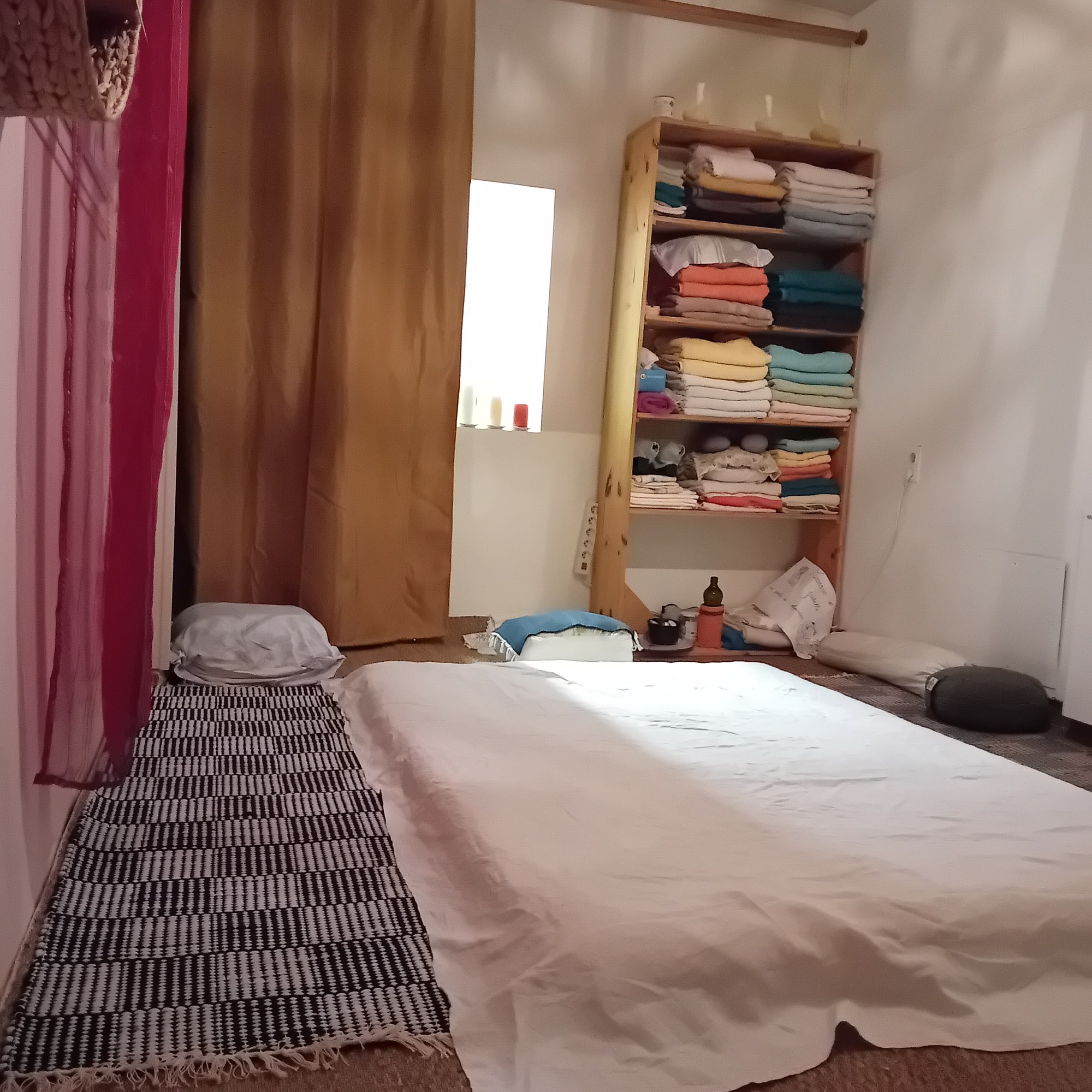 Je pratique le massage au sol sur un futon afin d’équilibrer le toucher.